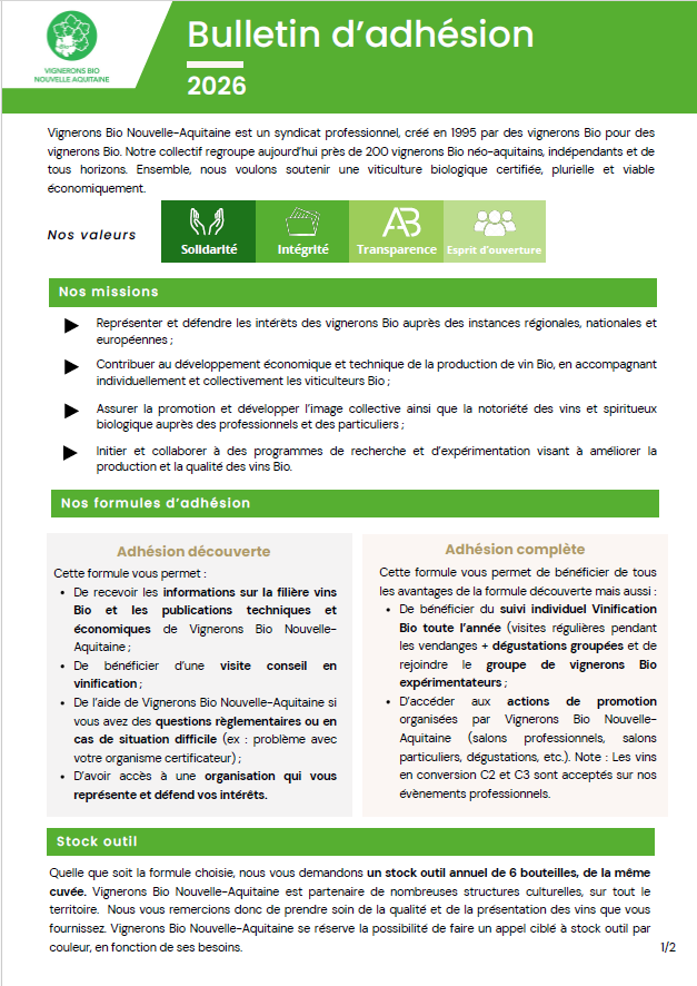 Tous les vignerons Bio ou en conversion Bio de Nouvelle-Aquitaine peuvent adhérer aux Vignerons Bio Nouvelle-Aquitaine.